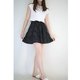 - 舒适感100分的松紧腰短裙,采用韩国进口碎花面料,黑白经典配色加一点绿,小清新~