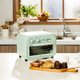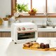 - 360度气流热风循环 多功能设计 气炸/烘烤/干果 1200W大火力 上方四根加热管 底部两根加热管 炉内菱纹设计 高效聚能烘烤 12L精致容量 60分钟定时 广域拨杆调温