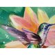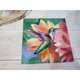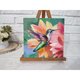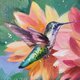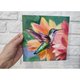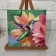 这幅描绘蜂雀的小型油画采用20/20厘米的硬纸板画布绘制而成。这幅描绘蜂鸟的油画采用厚涂技法,厚重的笔触使画面生动活泼,充满现代感。一幅色彩鲜艳的小蜂鸟原创油画不仅可以装饰您的室内空间,还可以成为一份难忘的礼物,送给您爱的人。
