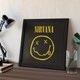 超脱乐团(英语:Nirvana),是一支美国的Grunge乐团,于1987年在华盛顿州的亚伯丁组建,通过他们专辑《Nevermind》里的Lithium和Smells Like Teen Spirit两首作品打入美国主流音乐。尽管在他们七年的职业生涯中只发行了三张录音室专辑,超脱乐团已经被视为历史上最具影响力和重要的另类摇滚乐团之一。此张复制画以乐团笑脸LOGO为主题,喜爱NIRVANA的朋友一定要买回家收藏,本产品已含框可直接挂于任何喜爱的地方展示.复制画本身大小为30*30CM,加框后约为37*37CM.