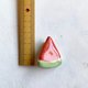 虽然制作耗时费工,但成品结合了土壤的温润触感、陶瓷的坚固、釉药的光泽及金彩的闪耀,成为一件充满装饰性的胸针。