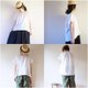 The fluffy gather enters the neck, it has become a funny silhouette with a difference between the front and back with the hem curved.