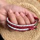 环保蜡线与一般线材不同,鹿编身为时常泡水(不论淡水或海水)的女子,实在受不了手绳或脚绳快速的褪色,因此使用这种精心挑选的线材,但就跟衣服一样,手绳脚绳还是会脏,可以配戴着洗澡(懒人如我,洗澡顺便清洁了),但请勿大力拉扯与摩擦(勿当童军绳使用)