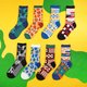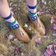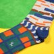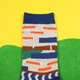 这款袜子属于“庭院”系列:以日式庭园景致为灵感,把庭园墙面、地面的石头布景、石板路及日本独有的枯山水造景等意象,搭配明快的色彩转化为几何布花。