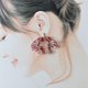 使用拈线与备用线编织成缎带造型的耳饰。