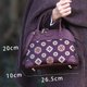 长26.5宽10高20cm 尺寸请参考图九。 非定位印花图案,人工裁剪, 会与图片有少许差别。 包口双向拉链,内裡有拉链袋+插袋各一个 外表纯色部分都是头层牛皮, 包包正面背面拼接印花面料。 袋型大小适中,可斜挎,手提两用 非常实用。