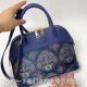 handmade全手缝真皮斜挎包手提包手作貝殼包粉色花卉