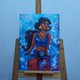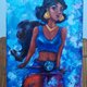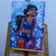 原创油画,现代茉莉公主骑着 Vespa 摩托车。该画是用油彩在纸板上绘制的,尺寸为35x25厘米。