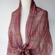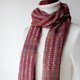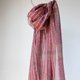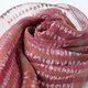 使用手织中标准亚麻纱线一半粗细的极细苎麻纱线,其特点是纤维毛羽少且带有光泽。经线总数达 720 支,织造密度细致,质感极致柔韧。亚麻披肩的吸水性、吸湿性和快干性优于棉质,能保持肌肤干爽不黏腻,触感清爽,适合从春季到秋季的三个季节配戴。