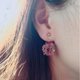 - 树脂\\花瓣 款式:耳针\耳扣(可选择) 尺寸:耳垂下长度 3~4cm。 材质:进口树脂、铁丝编织、黄铜、人工调色 数量:两颗一组。