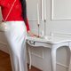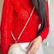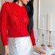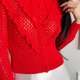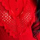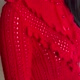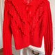 荷叶边手工针织上衣 订制款 颜色 (如图所示):红色 模特儿身着尺寸 S。 纱线成分:100% 纯棉。 采用塑胶钮扣。 袖子类型:插肩袖。 领口类型:圆领 保养说明: 30 度手洗。 平铺横向晾干。