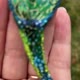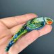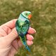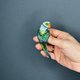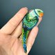 一个明亮的调色板和多色的珠子滴在这个胸针结合在一起.
