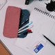 1.方便收纳于包包的铅笔盒~使用红色条纹拼接牛仔蓝布,散发
