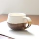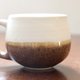 - It is a mug cup with a warm texture that is typical of pottery, made with matte white and brown glazes. The round shape that swells toward the bottom is cute and will hold a lot of drinks. Coffee, cafe au lait, breakfast soup, etc.