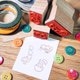 印章印面向上,印台向下轻拍印面,仔细观察印章图案上色均匀便可开始盖印。