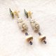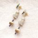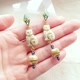 菱形金属框内,有排列成图腾的小干花和月亮金属片,可以简单地作耳钉配戴。亦可以配上猫咪捷克珠和其他串珠组成的耳环托,成为垂坠耳环。或者将自己喜欢的耳钉,配猫咪吊饰耳环托配戴。可以随时转换款式。