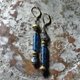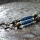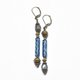 这款耳环由靛蓝色法国古董珠饰、拉长石和莲花造型的黄铜珠串联而成。