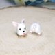 可爱的白色竖耳雪纳瑞犬 史纳莎犬耳环, 有头有屁屁。超级可爱! 使用优质德国软陶及防敏感耳针, 全人手掐塑, 烤焗, 上色。虽然制作时间及工序更多, 但为了更美观, 更耐用, 特别将耳针收藏于身体内。