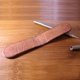 材质:双面原色牛皮(使用状态长约8cm x 宽约3cm,全展开长约16cm;会随使用慢慢变深)。