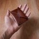 名片夹/咭片套采用了单面及双面的手缝的技法,以信封的概念为蓝本,使名片夹/咭片套显得更纤薄,让使用者易于以藏于口袋里,方便日常使用,计设师希望借此减省不必要的金属曝光,使整件皮革制品更完整。
