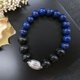 由12mm、10mm半雾面黑玉髓+青金石组合而成的天然矿石手串,主珠为925纯银,采用日本弹性线制作,好穿戴。