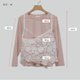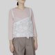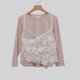 - 粉色舒适的竹节棉T-Shirt, 套上蕾丝跟纱交错拼接的小可爱, 跟着蕾丝有着不规则的下摆, 有立体感的别致, 两件式搭配个别可以拆开, 各自延伸不同的搭配。
