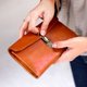 皮革质感韵味与复古黄铜金属共舞交织成绮丽乐章,为品味独特的妳点缀出不凡的魅力。使用日本顶级多油脂植鞣皮革制作,拥有绝佳弹性与光泽感,卡片夹层x12,钞票夹层x4与大容量零钱袋空间,皮夹上盖以金属黄铜弹扣固定,小皮片设计方便手指开阖施力。