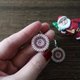 这款圣诞耳环/耳夹,由红、白、绿三色绢丝组合而成,具有成熟可爱的风格。