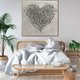 这幅抽象画描绘了一个由众多旋转、混乱的黑色线条在浅灰色背景上组成的大心形。心形内部错综复杂的卷曲和环状线条营造出一种动态和活力,赋予作品一种动态和活力。整体的单色色调强调了线条的质感和复杂性,使心形在柔和的背景中脱颖而出。