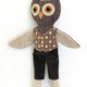 猫头鹰男孩毛绒玩具,高度 - 32 厘米(13 英寸),羊毛花和法兰绒,防过敏合成填充物。