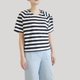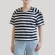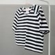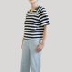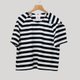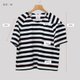 - 简单的黑白条纹T-Shirt, 全棉不透,宽版宽袖好活动, 插肩袖款单肩打褶, 绣上可爱的粉蓝蝴蝶结, 也为随性的日常绣上可爱的亮点。