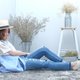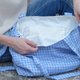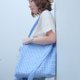 手染格子亚麻制包-蓝色