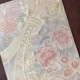 这款设计以华丽的花卉图案为特色,图案以庆长绫罗图案为特色。绫罗图案是庆祝时佩戴在礼物上的装饰,而绫罗图案则是类似细长绫罗图案的图案。在江户时代,它作为婚礼服饰和庆典场合的吉祥图案而广受欢迎。