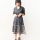 - 复古春夏欧洲可爱民族风小碎花拼接深蓝色棉质古着长裙