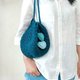 手钩编织3用缩口包 靛蓝 2心款