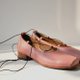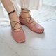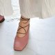 - 手工定制复古粉紫色方头芭蕾牛皮鞋 牛皮底