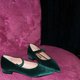这款柔软的丝绒平底鞋,缀以珍珠扣饰。