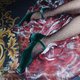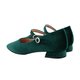 珍珠扣饰巧妙地吸引目光,聚焦于绿色的鞋身。