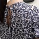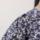 应用泡泡布轻盈防皱清爽特性, 白底蓝紫印花的可爱柔和的视觉, 搭配澎袖双层裙摆短洋装轮廓, 是对夏日直觉浮现脑海的意象。