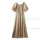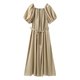 这款连衣裙,是女性浪漫与率性气质的完美融合。量感袖型,复古韵味十足,花苞结构更添立体美感,仿佛每一针每一线都诉说着旧时光的故事。领口抽褶设计,别致而灵动,可根据个人喜好调节领口位置,一字肩或斜肩,随心所欲,尽显女性独特魅力。