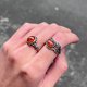 喜迎瑶 925银 金太阳 太阳石 活口 戒指 民族风 爱心戒指 男女