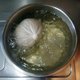 2.将石花布球放入锅中,加入2000C.C.清水,以电锅(或炉火)熬煮,电锅的外锅放400C.C.或2米杯量清水,半小时后电锅跳停(或将炉火熄火),拔起插头,闷1个小时,便可起锅,布球丢弃前记得把胶汁拧挤进锅中。