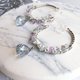 采用施华洛世奇水晶编织而成。 浅蓝色、水晶色和紫罗兰色三种颜色的水晶玻璃以均衡的方式交织在一起。 暗灰色的捷克玻璃带有精细的水滴形切割,随着每一个动作而摇摆。 【材料】 金属丝、树脂、玻璃珠 【尺寸】 长约4厘米 【处理】 ✓佩戴完毕后,我们建议用软布擦拭并将其存放在自封袋或盒子中。 ✓ 避免潮湿并存放在黑暗的地方,以避免变色。 ✓佩戴时请小心,以免弄湿。如果弄湿,请用干布擦拭。 ✓使用树脂的作品可能会有小气泡。