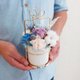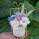 ☑材料:永生花、索拉花、干燥花、精致金框提篮花盆、海绵、黏着剂