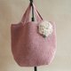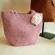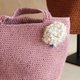 布棉花毛线手作编织包,四方底小巧棉麻编织包,粉红色棉麻,搭配灿烂米黄色毛绒火花/绣球花装饰花朵,极具画龙点睛效果,是最独特的棉麻编织包,棉线亲肤的细滑手感,小巧且轻盈,午餐时间清爽拎了就走