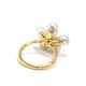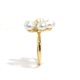从背面看,可见以 K18 黄金打造的坚实戒台,巧妙呼应着每一片花瓣独特的花形,稳稳地承托着珍珠。