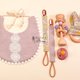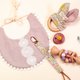 为了给新⽣儿及宝宝舒适亲肤安全体验,吸水夹层为“台湾无染二重纱”, 质地柔软、透气性佳100% 纯棉,围兜脖围 , 使用无漂染纯绵绳 , 在用餐时可自由调整脖围大小。