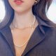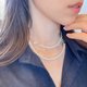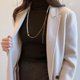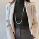 长项链的季节来了,使用两个相差不大尺寸的珍珠,用以表达并非只是唯唯诺诺的我们。一长一短的链条相接,并使用宽版链条,贯彻G.M.的理想风采:多面向且多采多姿,从不设限。