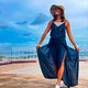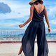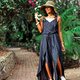 - 深V领重叠款式,配有编织双肩带