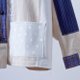 - 面料拼接的手法,老布都是从前(50年以上)的时候农民在家手工纺纱染色织成,不可成批量生产,所以每一款老布都是孤品,用完就没有了。为节约老布的使用,本款使用拼接的手法,将不同颜色纹样的老布和现代布料适当的组合,因为面料的特殊性,都是限量款。